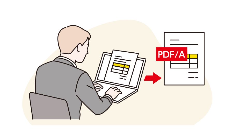 社内の請求書(WordやExcel)をPDF化し、電帳法に対応した形式で保存。