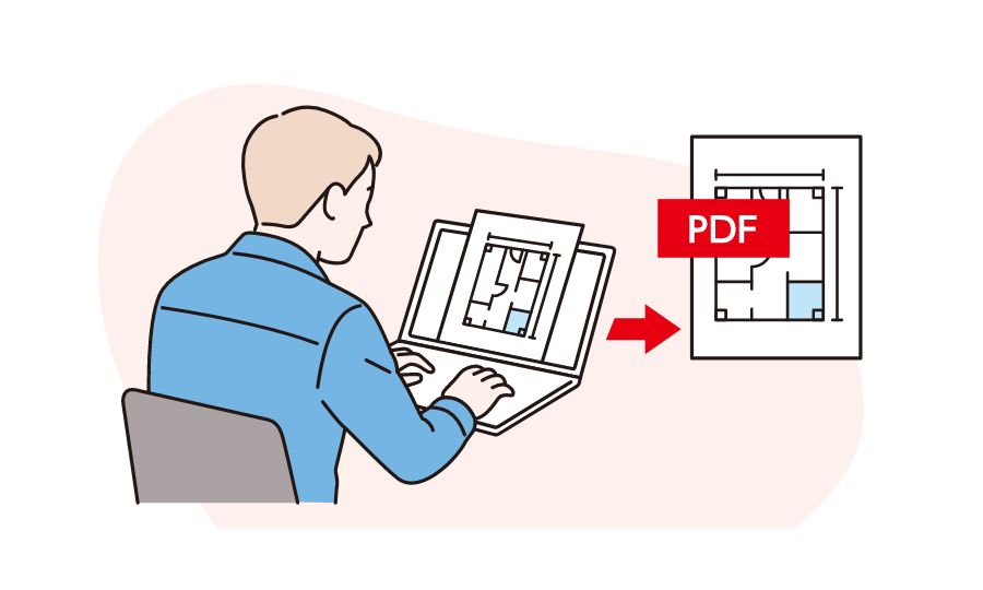 AutoCADやIllustratorで作成した図面・仕様書をPDFに変換し、社内外の関係者と共有。