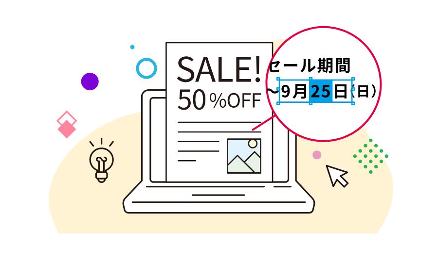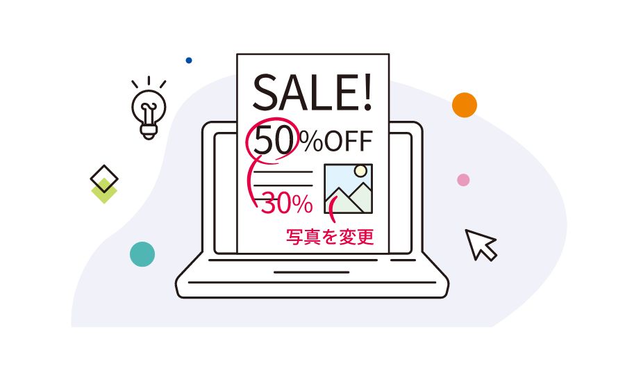 キャンペーン期間や価格、文言などの変更時に、PDFデータを編集して再入稿や社内展開。