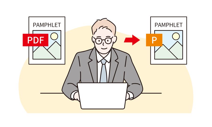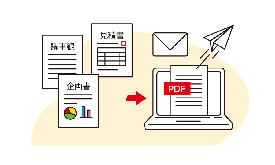 ExcelやPowerPointで作成した見積書や提案資料をPDF化し、顧客へ送付。
