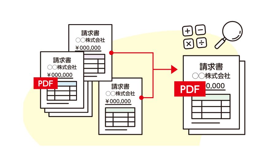 毎月発生する複数の請求書・領収書を結合し、報告資料や監査対応用資料として保存。