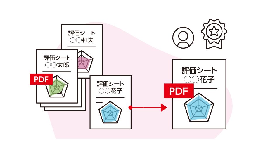 全社員の人事評価資料のPDFから対象者の該当ページのみを抽出。