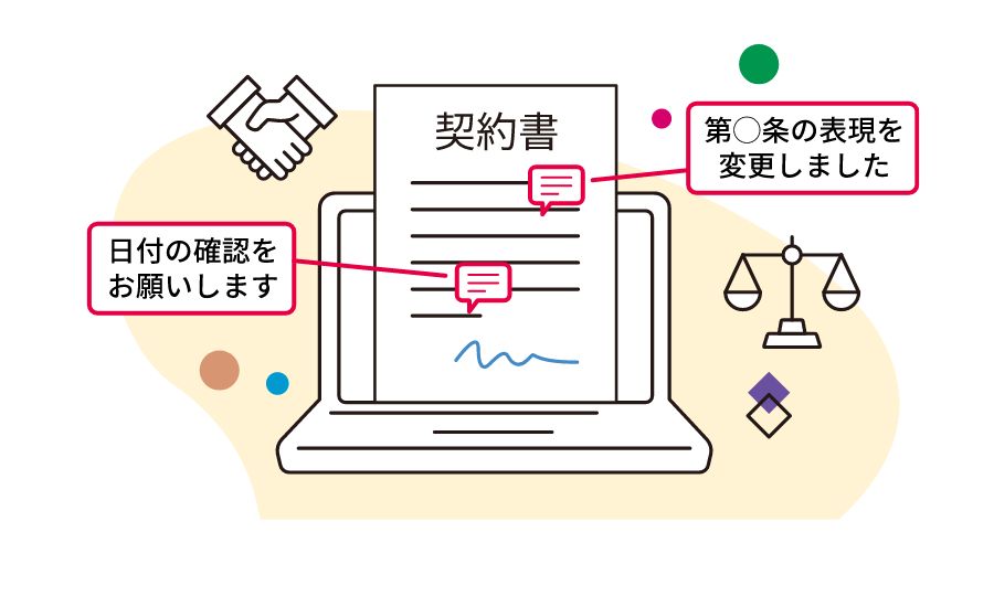 契約書や社内規程に要修正箇所を注釈で記録し、社内レビューに使用。