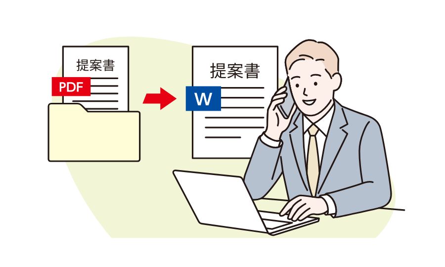 以前の提案書をWord形式に変換。一部修正し、新規商談資料として再利用。